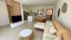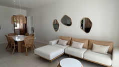 With two en-suite bedrooms and a stylish open-plan living area, it opens onto two expansive terraces — perfect for sunbathing, sea-gazing, or dining with extraordinary ocean views.